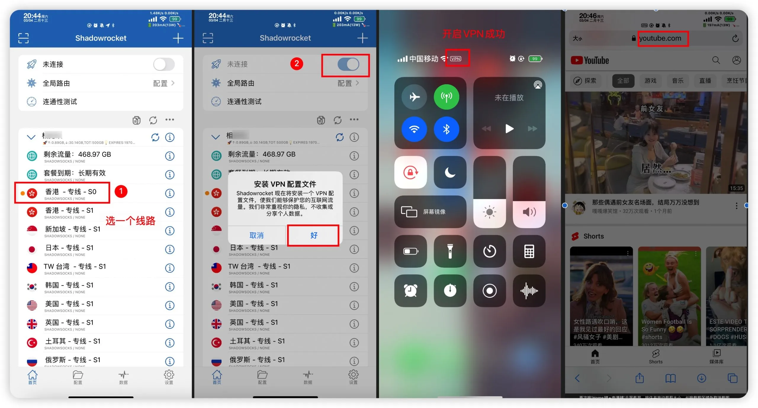 最后一步,香选择一个自己喜欢或者需要的线路,然后打开小火箭的总开关,第一次打开可能会弹窗提示,点击允许即可.